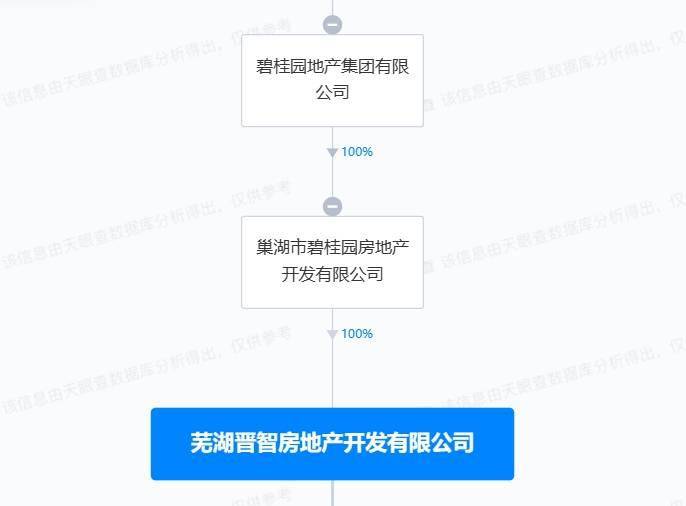来安碧桂园房地产开发有限公司成立于2010年12月,法定代表人为汤雨,注册资本14.5亿人民币,为芜湖晋智房地产开发有限公司全资子公司,芜湖晋智房地产开发有限公司则由碧桂园地产集团有限公司间接全资持股。