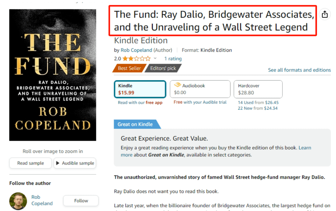 在《纽约时报》记者罗布·科普兰(Rob Copeland)所著的《The Fund》发布后,其直指桥水基金的投资策略,并非像其宣扬的那样基于自动化系统、人工智能等规则,而是全凭创始人瑞•达利欧(Ray Dalio)一人拍脑袋决策。其称桥水对外宣称的投资体系只是一场精心构建的骗局。
