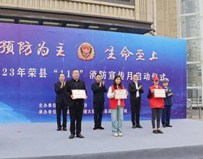 仪式上,对荣县2023年度“消防安全管理示范单位”“优秀消防安全管理人”“消防安全优秀网格员”“消防安全优秀志愿者”“全民消防学习平台学习之星”进行了表彰;通报了今年荣县的火灾形势;宣读了全县“119”消防宣传月活动方案。
