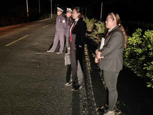 当天下午18时20分许,张某(化名)驾驶一辆轻型普通货车在G311国道行驶过程中,撞到李某(化名)家的带仔母牛一头,造成大母牛死亡、车辆损坏的交通事故。由于带仔母牛价值较高,车辆损坏情况较重,车辆一方仅投保了交强险,牛主人获赔数额比例较低。因此,直至夜里,事故双方始终未能就事故赔偿问题协商一致。当事人和围观群众聚集在现场,影响正常交通秩序,存在交通安全隐患。为促进纠纷及时化解,十四道沟交警队根据与长白人民法庭建立的“道交一体化”纠纷化解机制,邀请长白人民法庭法官干警到场配合解决纠纷。