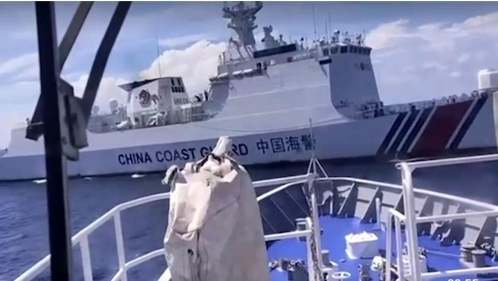 (图为菲律宾非法补给船遭我国海警船只拦截)