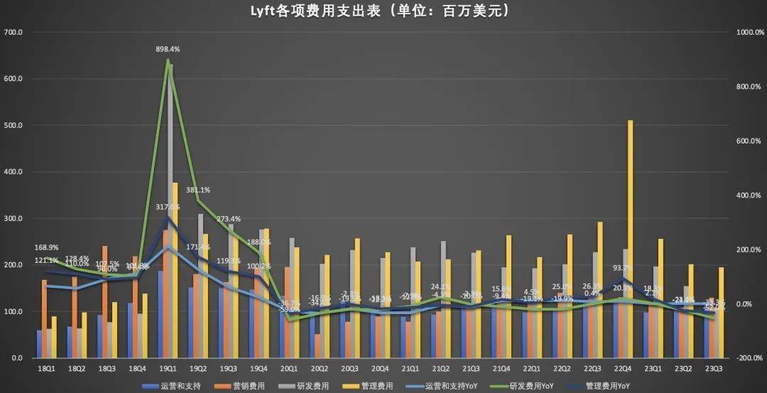 Lyft则在研发费和管理费用进行了较大力度的压缩。Lyft三季度研发费用同比减少52%至1.092亿美元,管理费用同比减少33.3%至1.953亿美元。