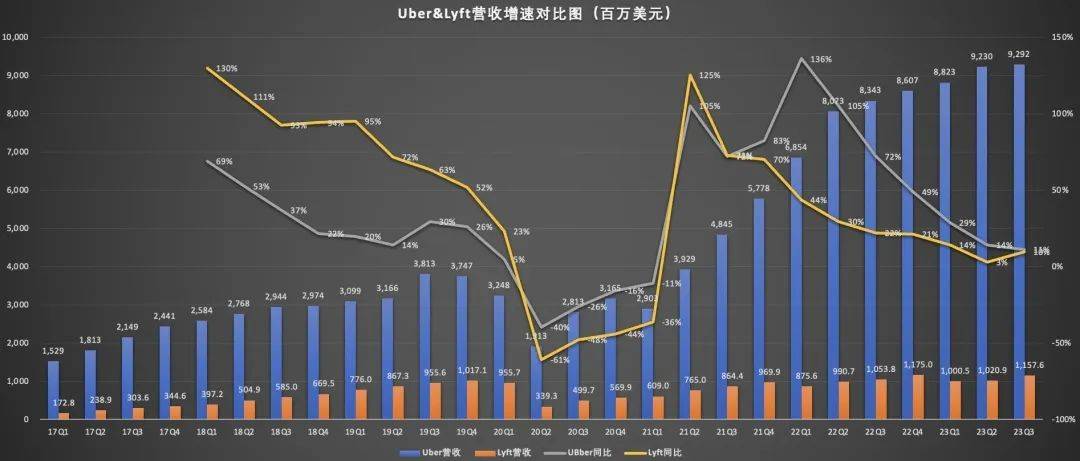 近日,网约车两巨头Uber和Lyft先后公布了2023年第三季度财务业绩报告。Uber和Lyft虽说都是网约车出行的巨头,但是目前两者之间的战略大不同,那么,Uber和Lyft谁的估值更有想象力呢?