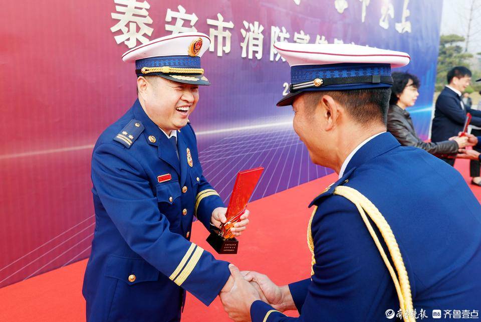 11月9日上午,泰安市消防宣传月启动仪式在岱庙北广场举行,活动主题为“预防为主,生命至上”,活动旨在全面普及消防安全常识,提升公众消防安全素质,以高水平安全服务高质量发展。启动仪式上,宣读了《全市2023年消防宣传月活动方案》、《全市最美消防员表彰通报》、为新成立消防志愿服务队授旗、为最美消防员代表颁奖。