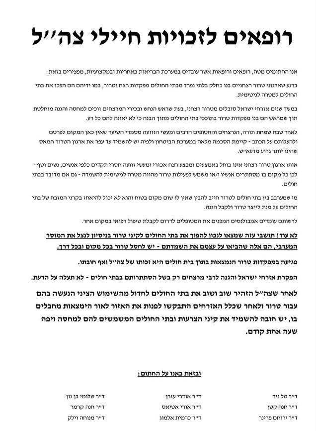 在最近传出的一则新闻中,100名以色列医生联名签署一封请愿书。他们竟然公开呼吁使用空军力量对加沙地带最大的希法医院进行轰炸打击。这众多医生们所提及的根据就是他们认为哈马斯恶意利用医院作为基地进行“恐怖主义活动”,并且视之为以色列拥有的"合法权力"。