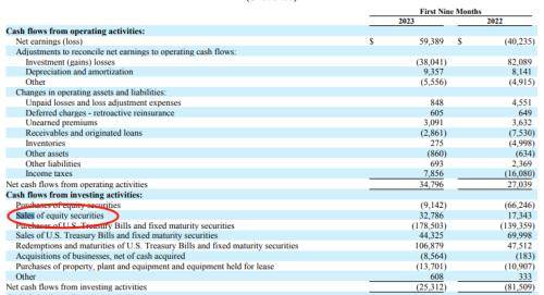 依据伯克希尔财报,2023年Q3营收932.1亿美元,较去年同比增长21.2%,超出市场预期;运营利润107亿美元,较上年同期的76.5亿美元同比增长40.6%,远超市场预期的89.5亿美元。不过这一出色成绩,主要来自保险业务本身持续运营产生的利润,而并非来自于投资。