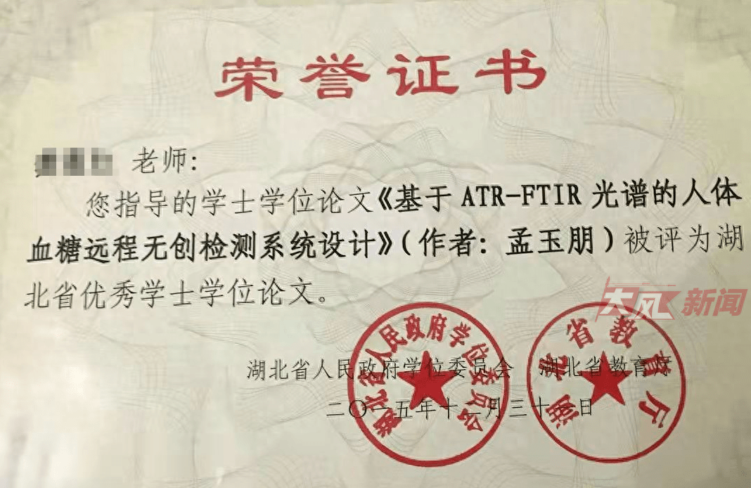 2021年11月9日,该校学术委员会给孟玉朋送达了一份《关于叶某学术不端行为处理意见的函》。