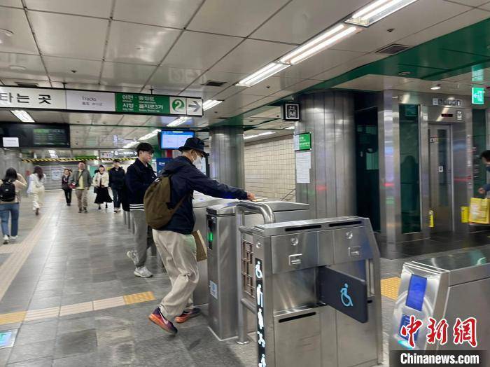 当地时间9日,市民在首尔地铁新村站刷卡进站。万佳欣 摄