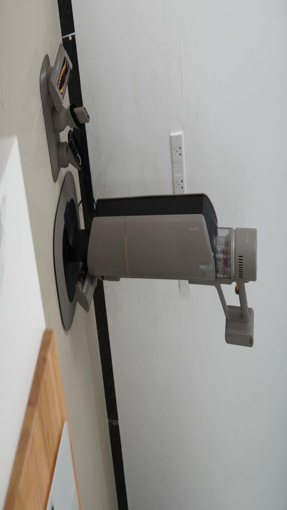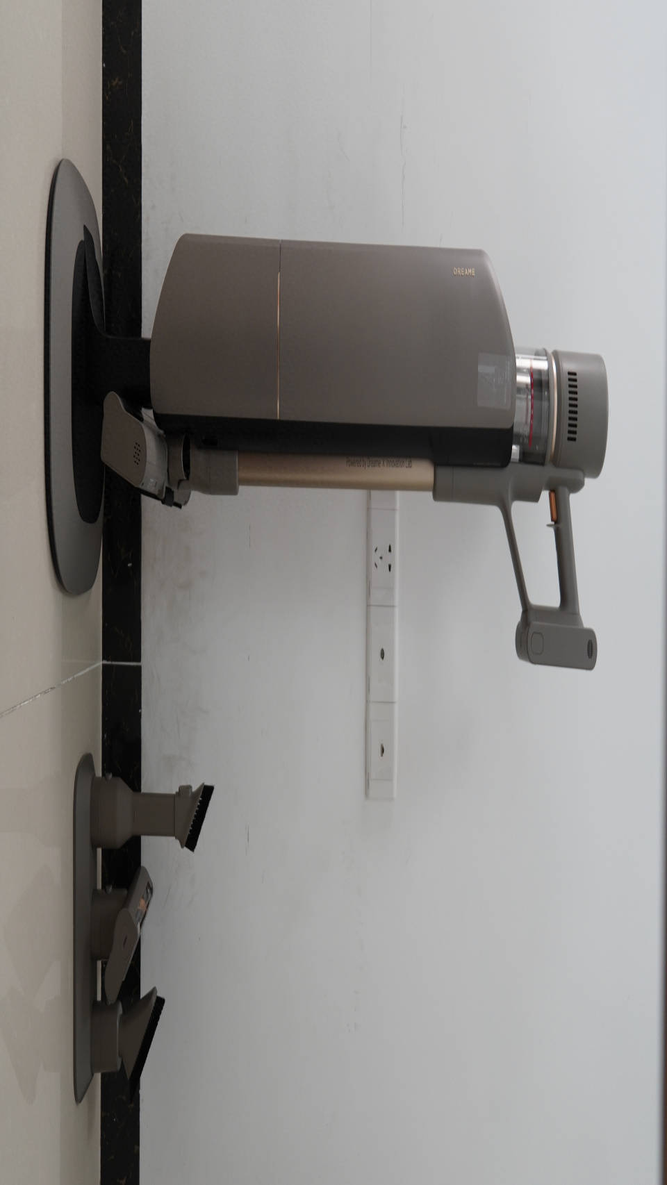 追觅Z10 Station的经典灰配色非常淡雅,我个人觉得这种颜色非常百搭,无论是新中式家庭装修、还是简约风格,都不会觉得违和。追觅Z10 Station的底座是不需要打孔的,宽大的底座能够支持单手轻松拿取与安放,1.67kg的主机重量单手拎着也不累,单手清扫轻轻松松。
