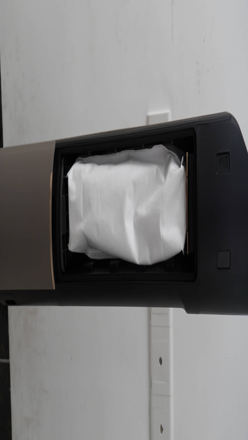 这样的倾倒方式对于有鼻炎、容易过敏的用户非常不友好,毕竟好不容易将家里的灰尘清理,一打开盖子就直接冲到鼻子里了。有一种灰尘好好的躺在地方吸不到,用完吸尘器反而吸到了,这就让吸尘器变成了灰尘转移器。