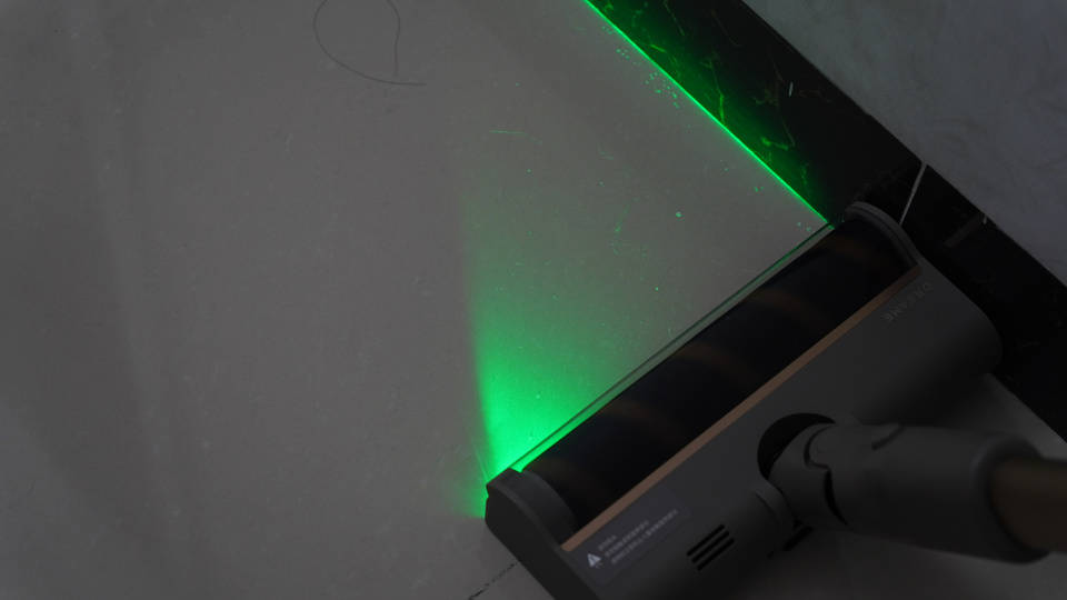 对于日常生活中经常会遇见的细小灰尘,打开绿光显尘方案,日常清洁中一次就可以清扫各种灰尘,灰尘顺着滚筒就进入吸尘器风道,将灰尘垃圾等东西收集在机身内部。在清扫完一片区域之后,借助绿光显尘技术,还能看看家里还有哪一些部分自己忘记清洁,毕竟不开灯真的很难看见地上的各种细小灰尘。