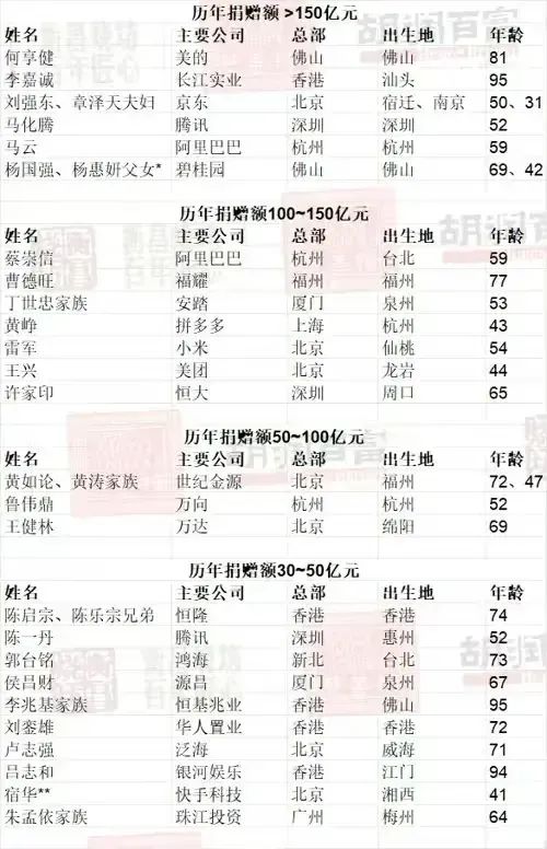 这其中不仅有我们所熟知的马化腾、曹德旺,