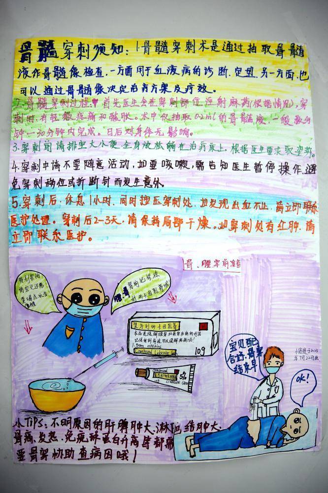 病区内设有爱心墙,上面充满了患者对医护人员的感谢、家属对患者的祝福,以及患者为自己树立的目标。在儿科病房的小才艺展示区,挂满了充满童真的画作,患儿被鼓励用画笔表达自己的想法,这拉近了患者与医护人员之间的距离。