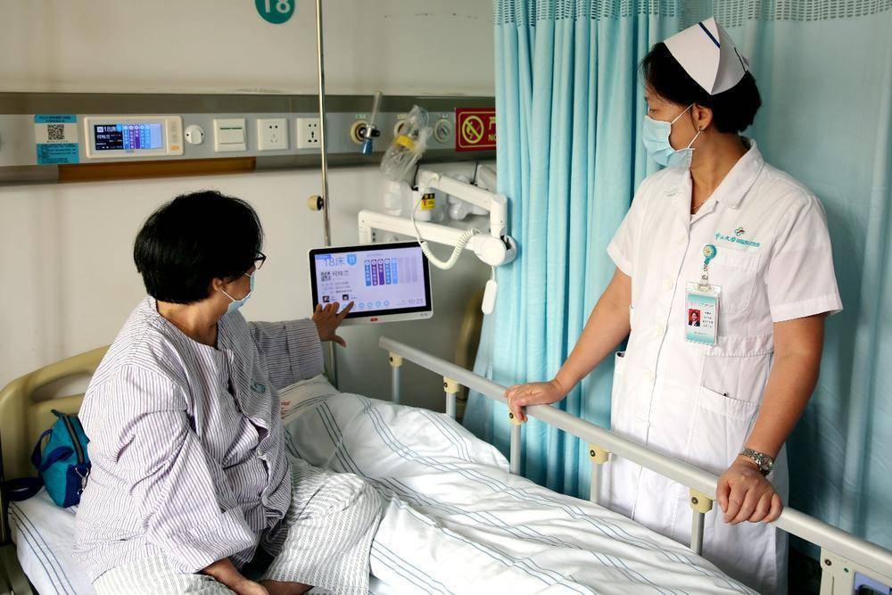现在患者入院,直接到病区报到,护士在系统上分配床位后,患者通过微信或病区内的自助机直接办理医保登记和入院缴费,只需3-5分钟就可以办理好入院手续。比以往排队办理缩短了30-50分钟。