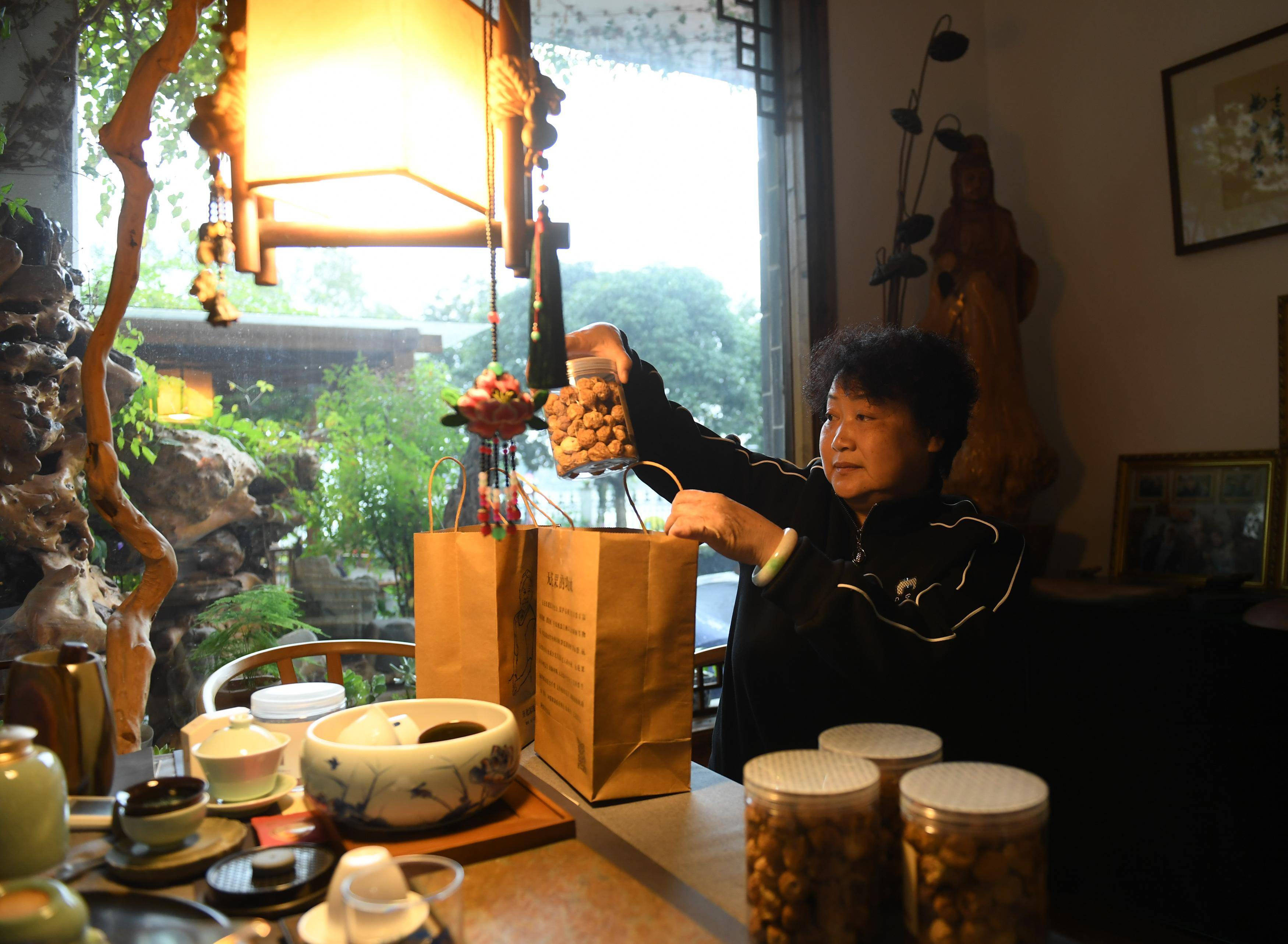 11月8日,村民黄剑英在家中包装无花果干。黄剑英家承包了100多亩无花果种植基地,每年鲜果、干果的销售额达数十万元。 新华社记者 翁忻旸 摄