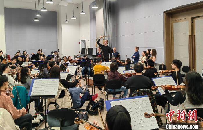11月8日下午,费城交响乐团指挥特里斯坦·瑞斯·舍曼正在中国交响乐团排练厅指挥排练。 中新社记者 应妮 摄