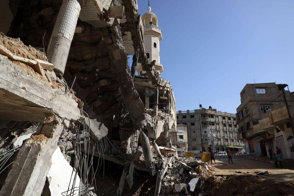 这是11月9日在加沙地带南部城市汗尤尼斯拍摄的被损毁的建筑物。新华社发(里泽克·阿卜杜勒贾瓦德摄)