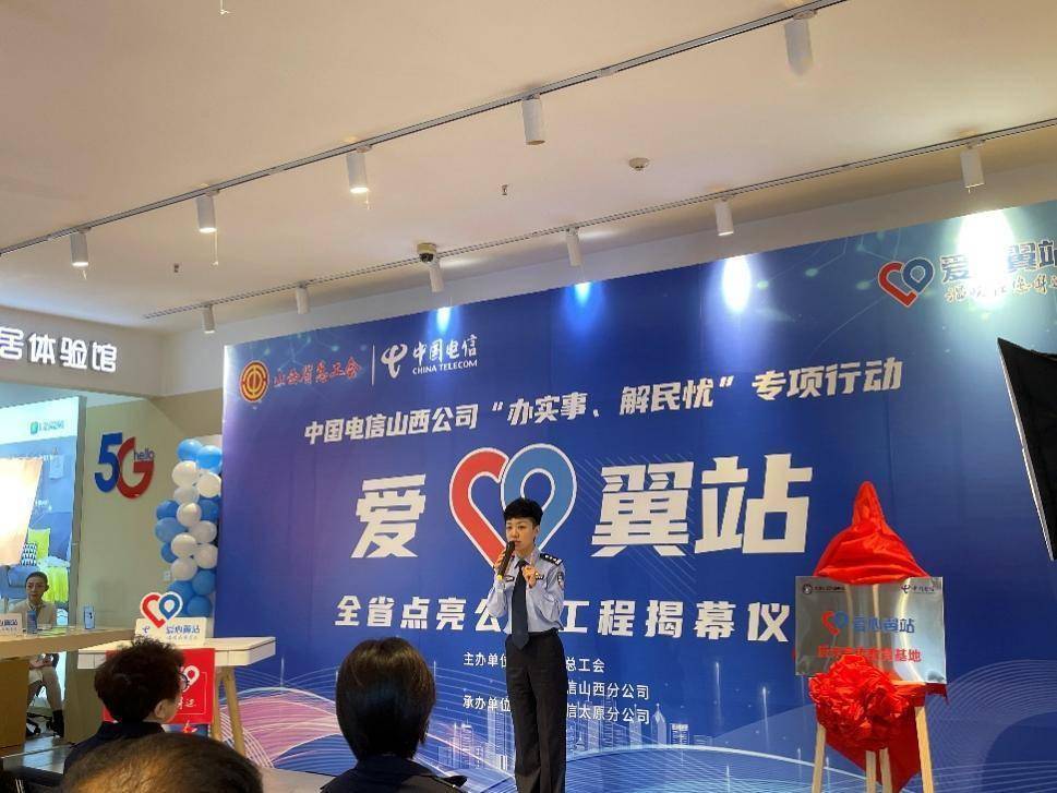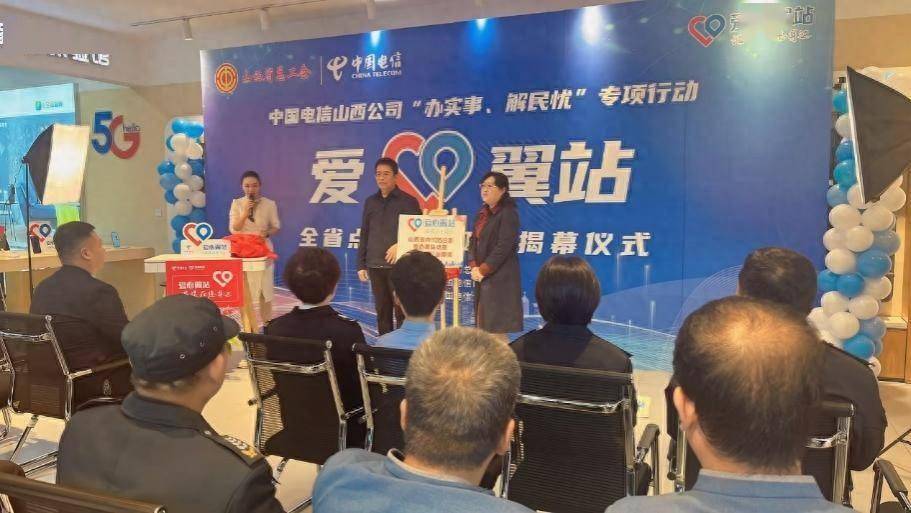 2023年10月27日,中国电信山西分公司 “爱心翼站”全省点亮公益工程揭幕仪式在太原分公司南中环营业厅举行,标志着太原市223家“爱心翼站”全面投入使用。2023年太原分公司新增近200家站点,其中被省总工会命名的省级“工会爱心驿站”已有3个,建立起了一支60余人的“爱心翼站志愿服务队”,通过各媒体各平台推广宣传“爱心翼站”20余次。太原分公司持续推进“办实事、解民忧”爱心翼站专项行动,充分发挥爱心翼站公益服务能力,助力服务品牌建设。