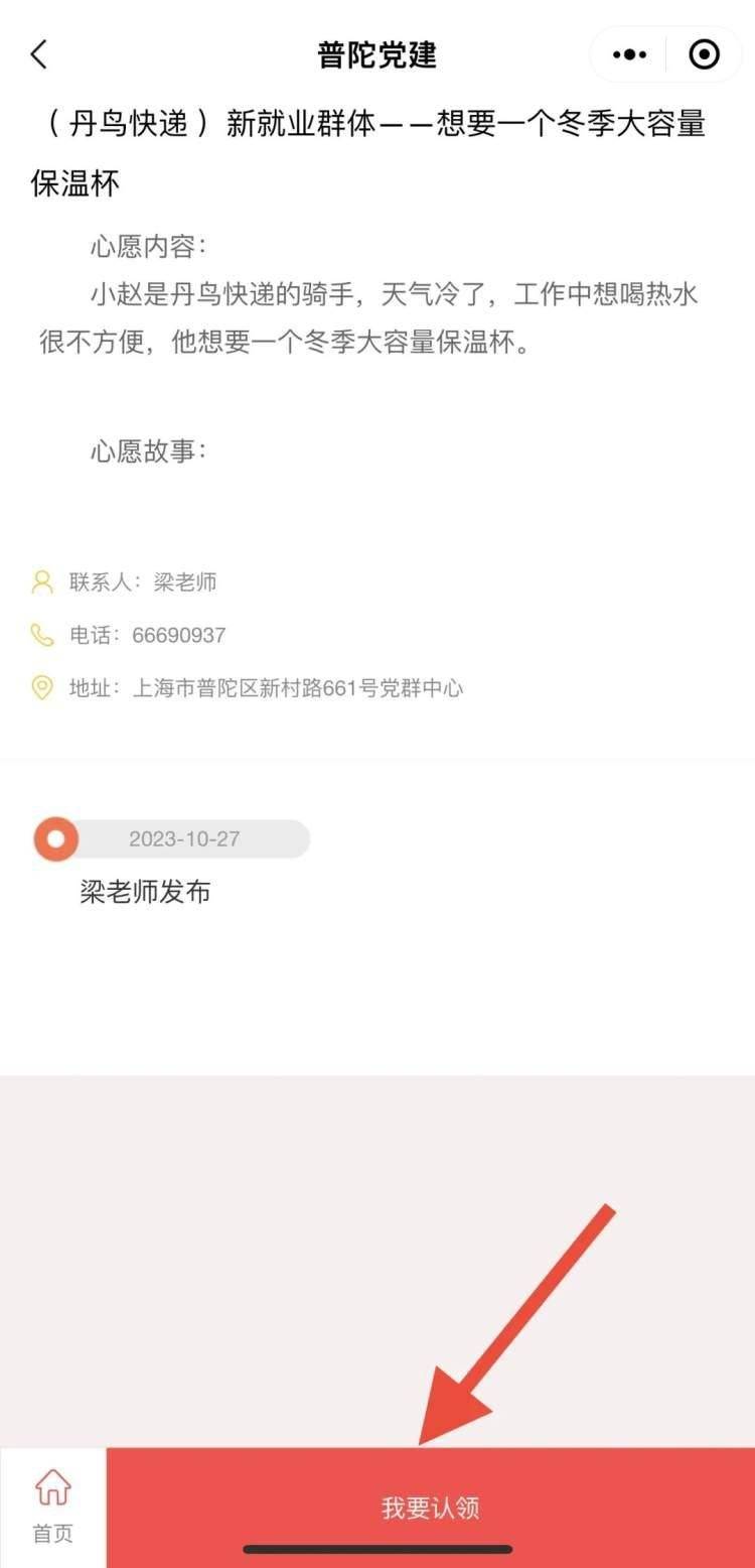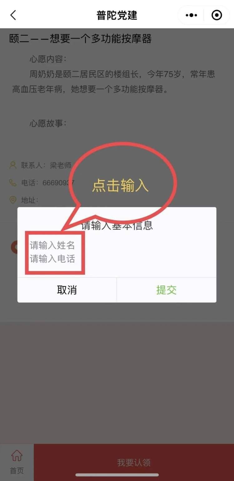 选择认领心愿,认领后请及时与社区党群服务中心联系。