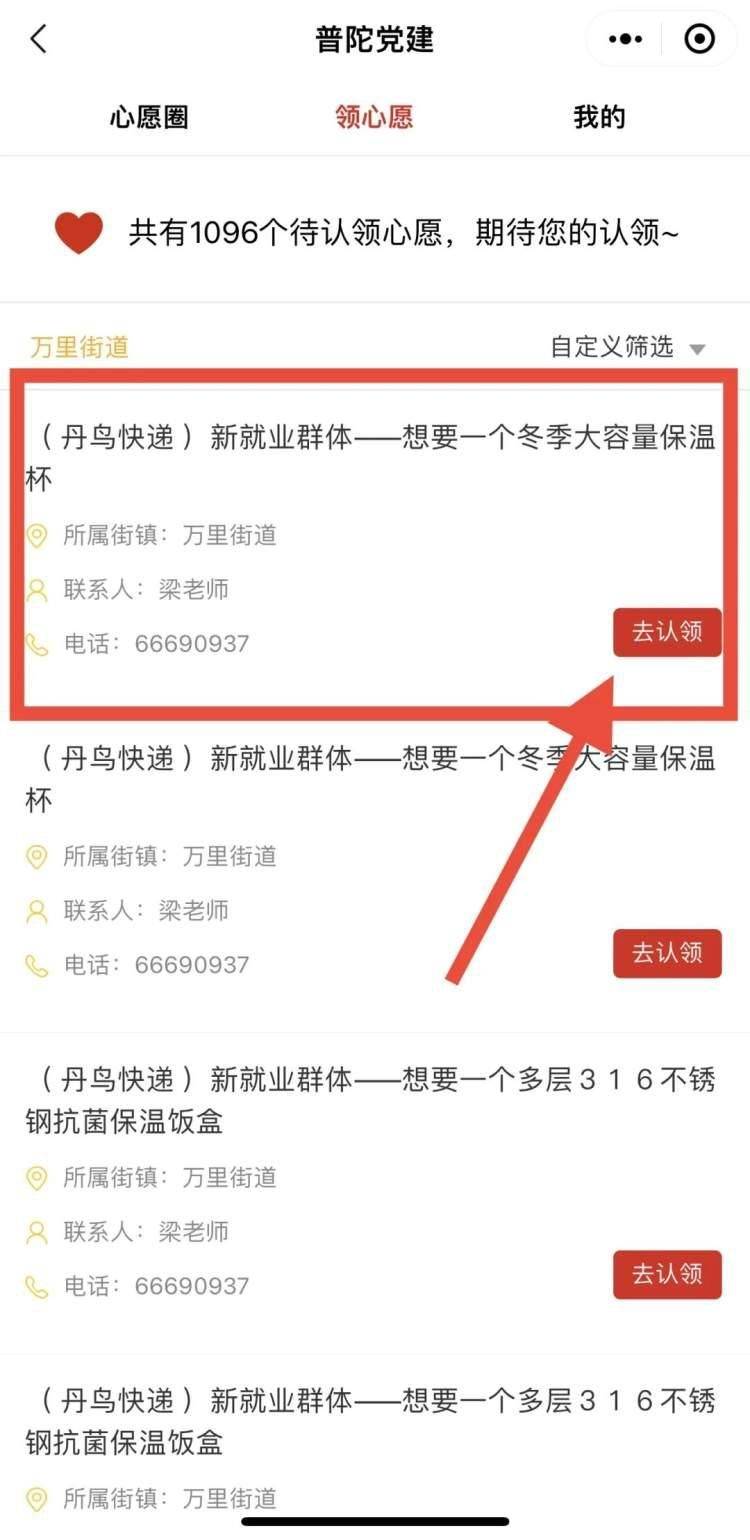 万里辖区内的党组织、单位、个人均可在“党徽在闪耀”小程序进行微心愿认领。