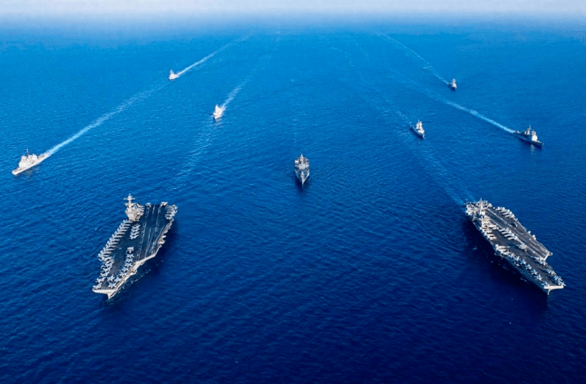 【美国海军福特号航母与艾森豪威尔号航母编队在地中海进行演习】