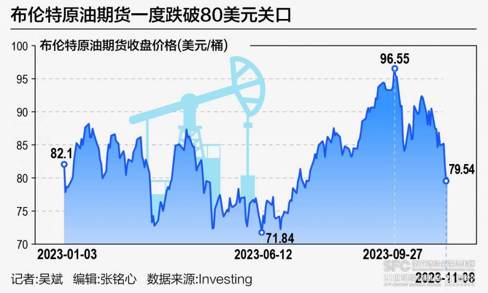 本周布伦特原油价格自7月以来首次跌破每桶80美元大关。11月10日,布伦特原油期货徘徊在80美元/桶附近,WTI原油期货在76美元/桶附近。