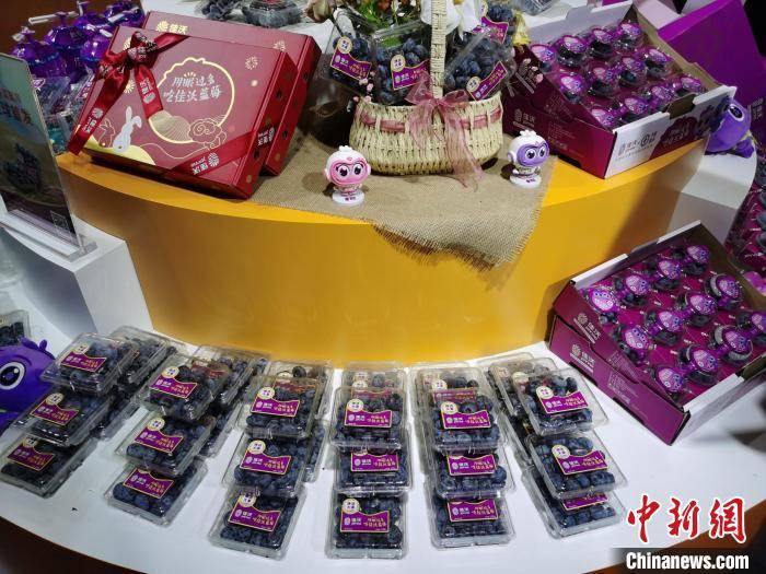 图为11月8日,鑫荣懋集团展位上的各色秘鲁蓝莓。 中新社记者 钟升 摄