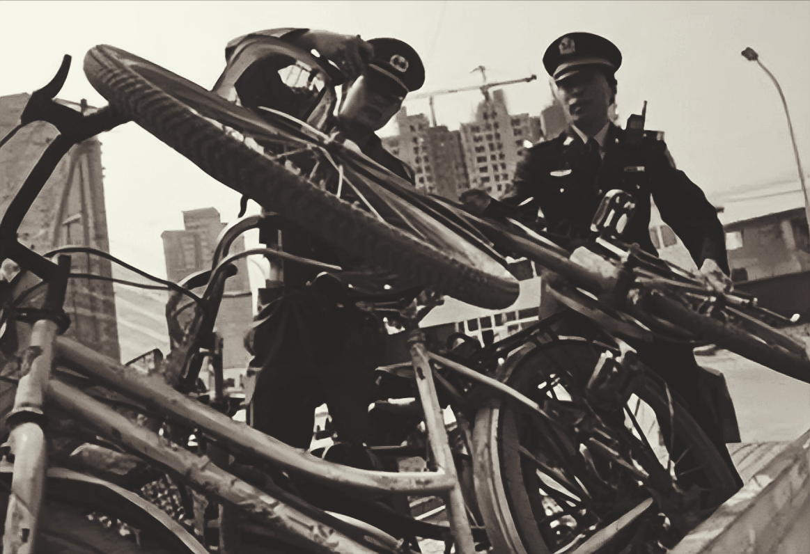 按照当时的规定,警察有权对没有车牌的自行车进行检查询问。