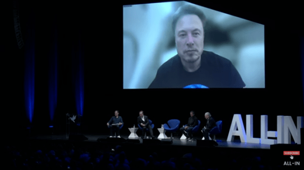 马斯克在视频连线中发言 截图自主办方“The All-In Podcast”官方X(原推特)账号