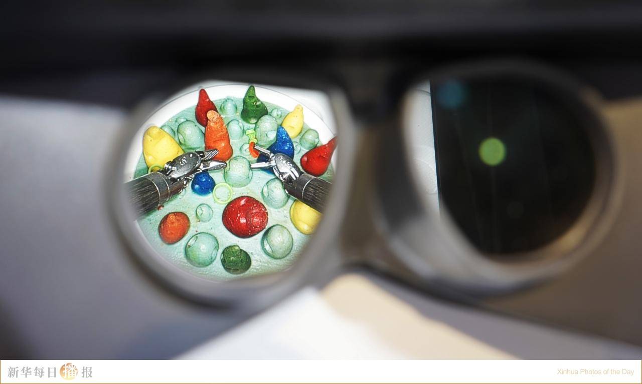 11月7日,在第六届进博会医疗器械及医药保健展区复星健康展台拍摄的国产达芬奇手术机器人模拟手术视角。来自世界各地的高质量产品汇聚进博会,更好地诠释高品质生活。11月5日至10日,第六届中国国际进口博览会在国家会展中心(上海)举办。