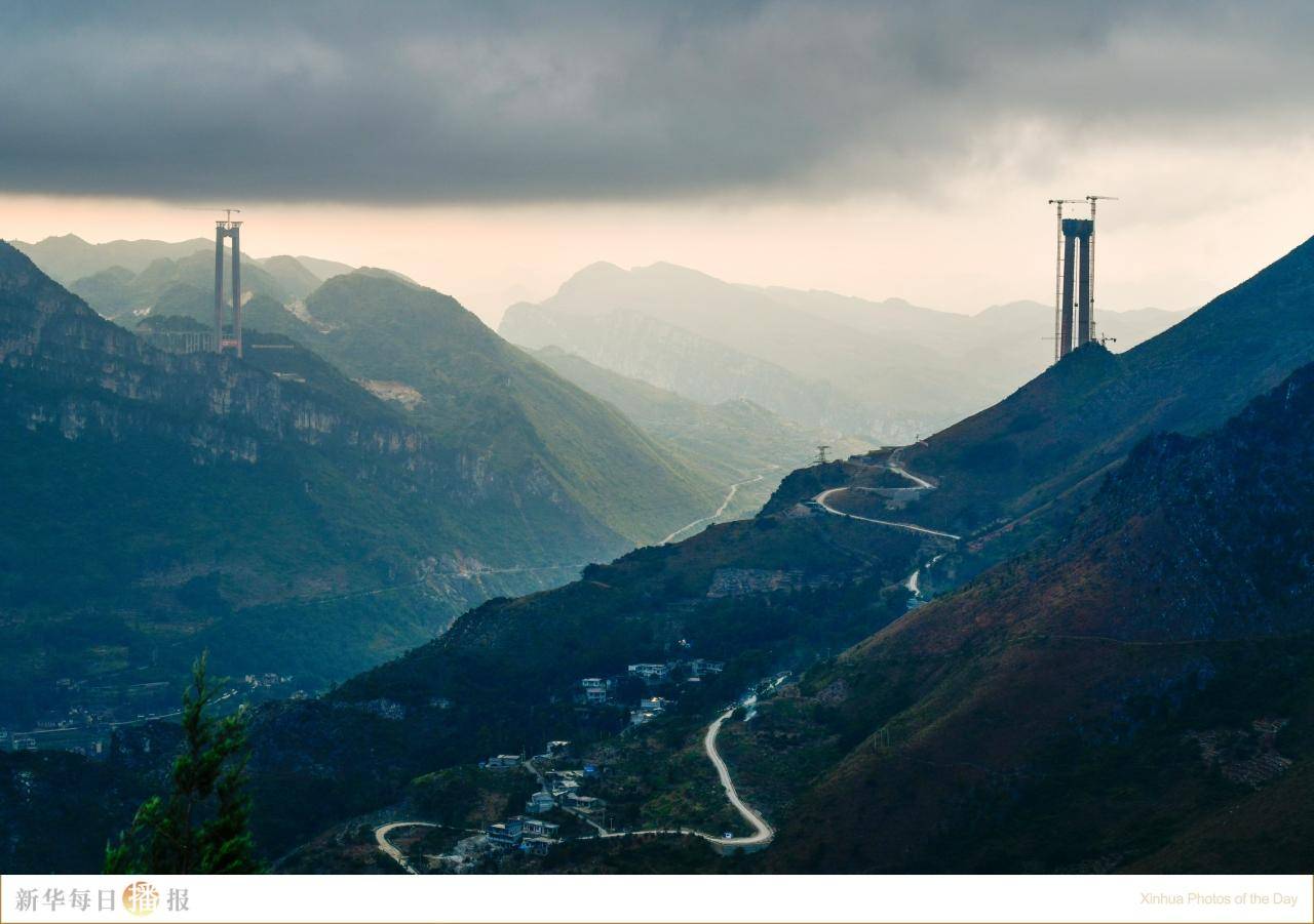11月7日,贵州六安高速花江峡谷大桥两岸主塔。目前,由贵州桥梁集团和贵州公路集团共同承建的六安高速花江峡谷大桥两岸主塔顺利封顶,大桥关键性施工节点获突破性进展。花江峡谷大桥是贵州六安高速公路的控制性工程,建于被称为“地球裂缝”的花江大峡谷之上,全长2890米,主跨1420米,主桥桥面与谷底的北盘江水面垂直高度达625米。