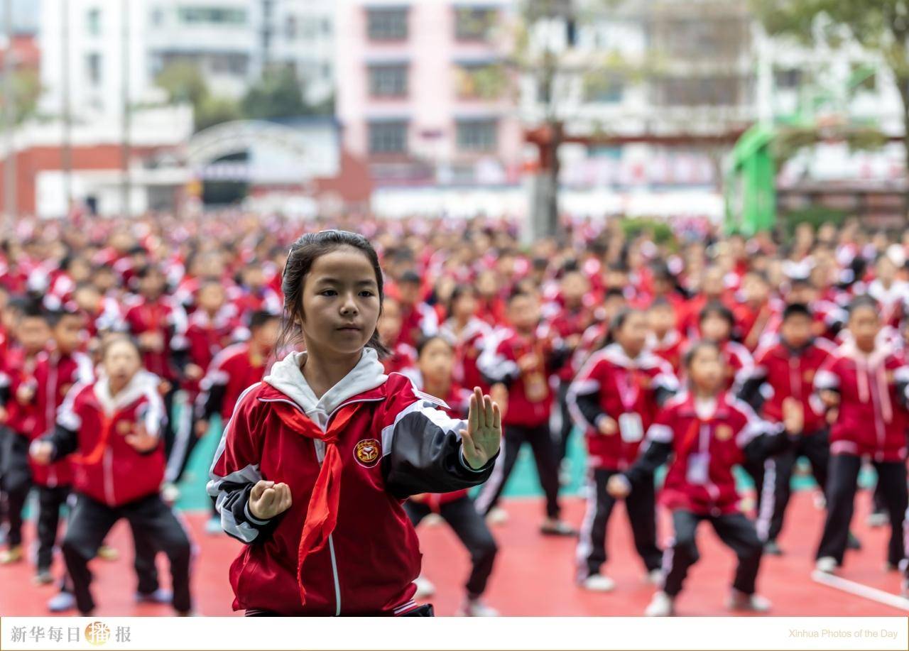 11月9日,在黄平县新州镇第二小学,学生在大课间做活动。近年来,贵州省黔东南苗族侗族自治州黄平县持续加大教育投入力度,积极探索民族地区育人新路。