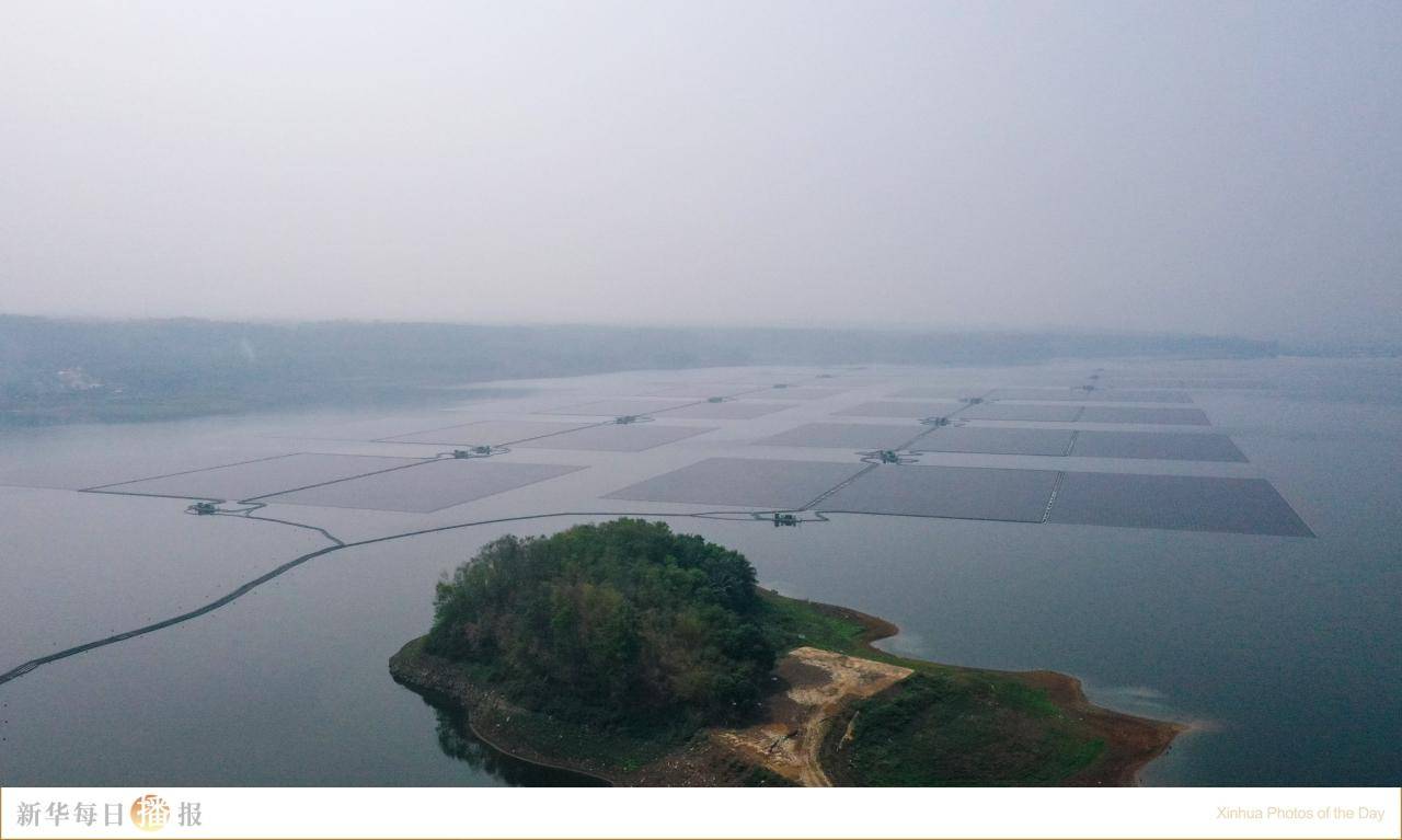 11月9日,在印度尼西亚西爪哇省芝拉塔水库拍摄的芝拉塔漂浮光伏项目漂浮阵列(无人机照片)。由中国企业承建的光伏项目当日在印度尼西亚西爪哇省芝拉塔水库实现全容量并网发电。印尼总统佐科出席并网发电仪式。佐科在仪式上表示,印尼拥有大型新能源发电项目的梦想终于实现,这是东南亚最大的漂浮光伏项目。