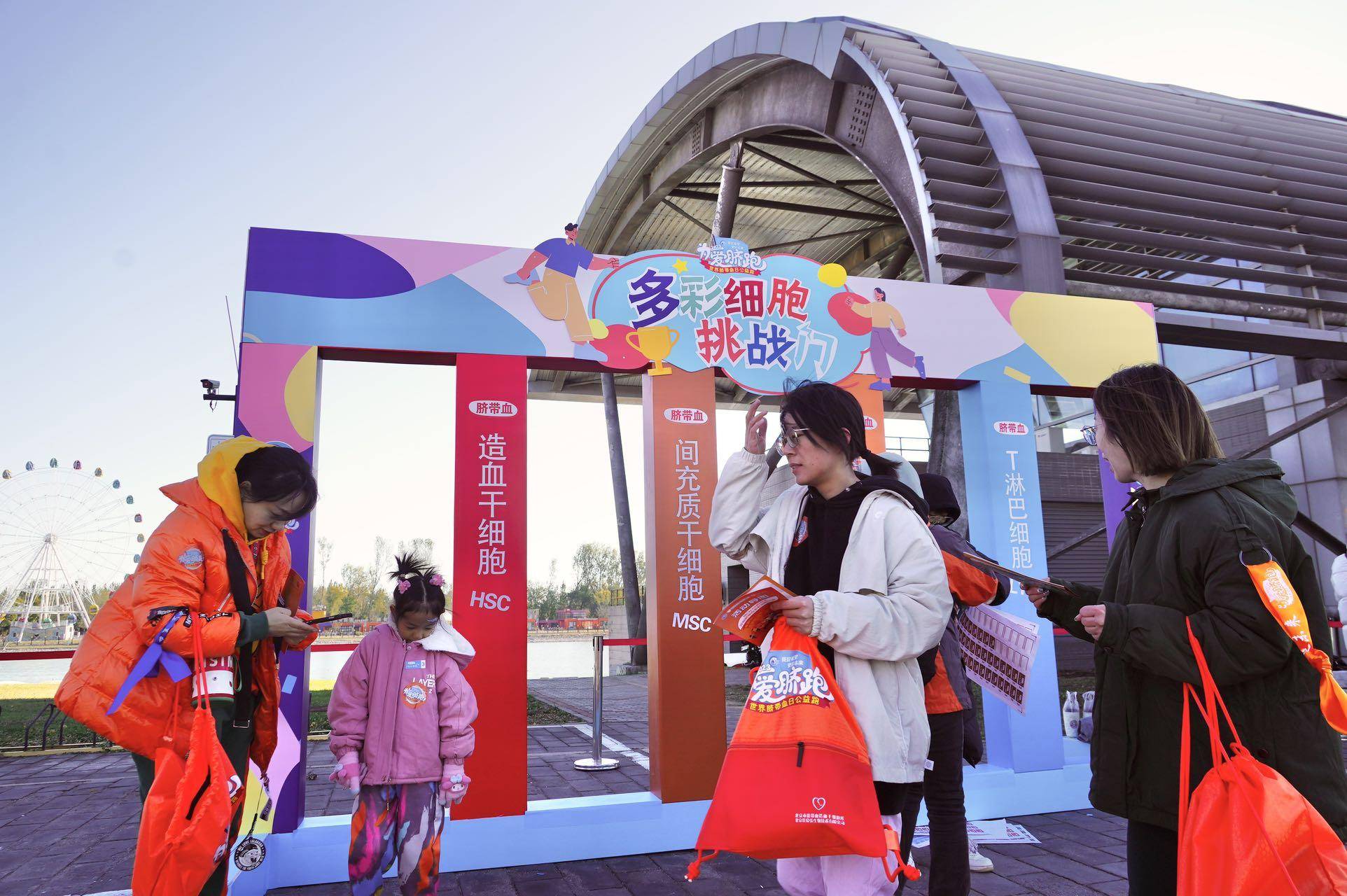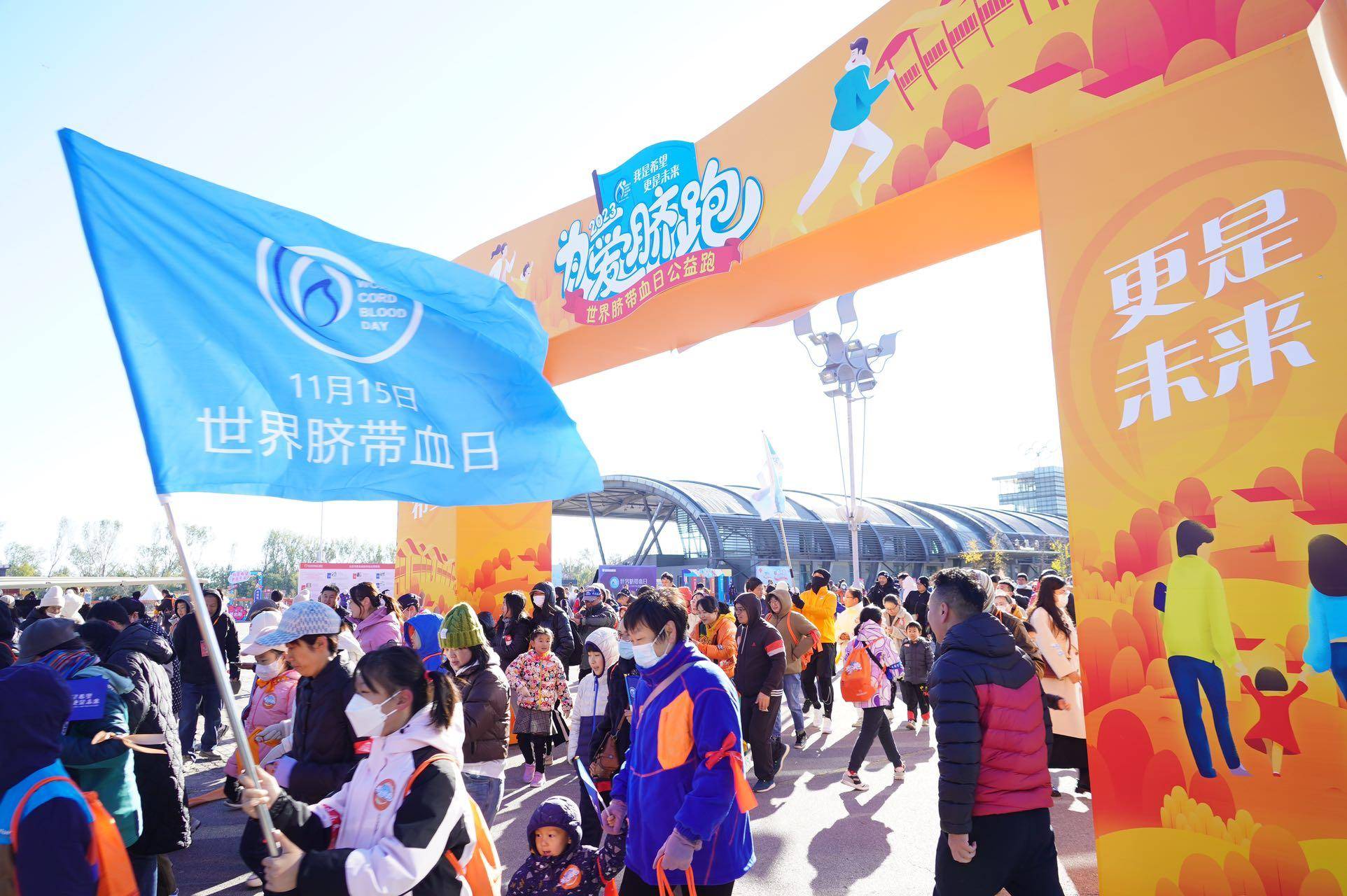 为迎接第七个“世界脐带血日”, 11月11日北京市脐血库在北京奥林匹克水上公园举行一场主题为“为爱脐跑”的公益跑活动。由脐带血储户、医护工作者及社会人士组成的1000余人的公益跑团,分别佩戴各色彩带一路闯关打卡,向更多人宣传脐带血的多元价值。