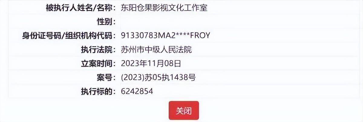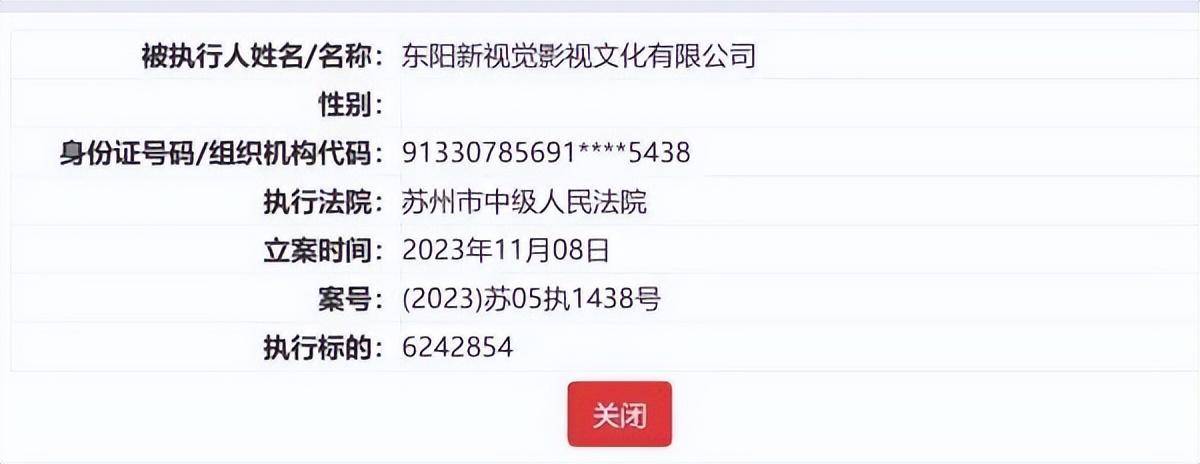 据中国执行信息公开网,近日,东阳仓果影视文化工作室、东阳新视觉影视文化有限公司新增一则被执行人信息,执行标的624万余元,涉及合同纠纷案件,执行法院为苏州市中级人民法院。