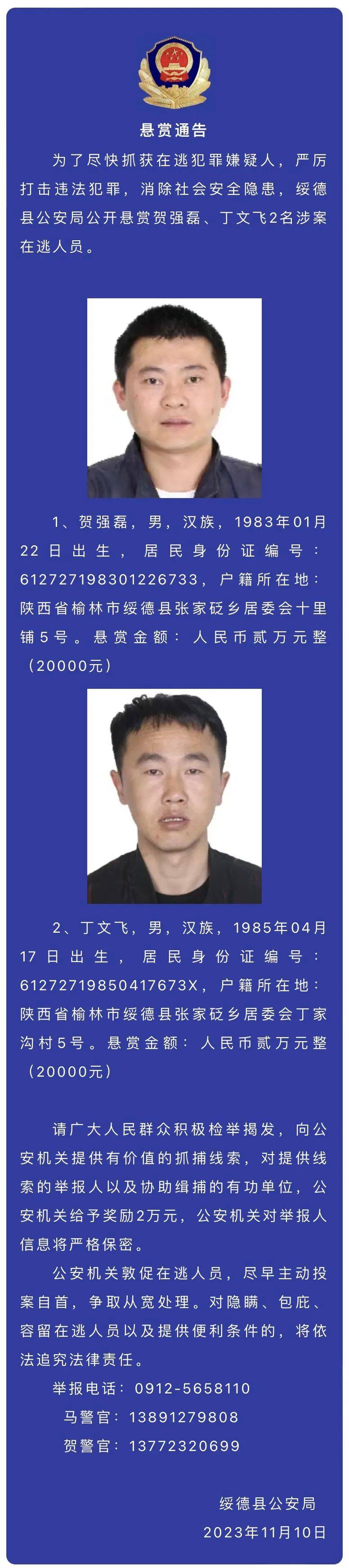 原标题:涉案在逃人员!陕西这里发布悬赏公告
