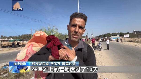 巴以新一轮大规模冲突持续进行。在以军完成对加沙地带北部加沙城的合围之后,以方要求当地居民离开加沙城向加沙南部撤离,每天开放3到4小时的撤离通道。11月10日,中央广播电视总台报道员在加沙地带中部的加沙河谷附近,对刚刚从加沙城撤离的当地民众进行了采访。