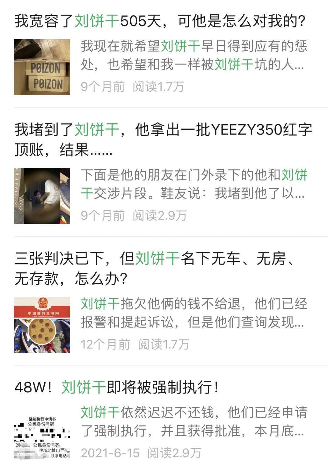 近日,据鞋友反馈,鞋圈著名老赖——刘饼干,一共9个强制执行已经登上了中国执行信息公开网!