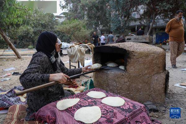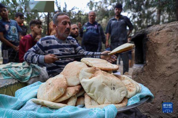 11月11日,在加沙地带南部城市汗尤尼斯,志愿者为无家可归的巴勒斯坦人制作大饼。