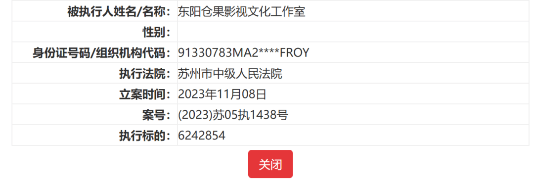 据中国执行信息公开网,近日,东阳仓果影视文化工作室、东阳新视觉影视文化有限公司新增一则被执行人信息,执行标的624万余元,涉及合同纠纷案件,执行法院为苏州市中级人民法院。