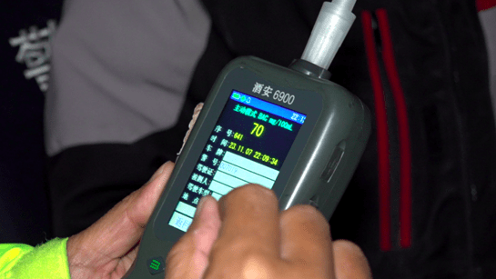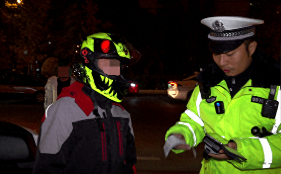 11月7日晚10时许,刘某驾驶两轮摩托车带着自己的同事在望京地区行驶,因乘客未佩戴头盔,被夜查的交警拦停,对乘车人进行教育。民警同时对驾驶员进行酒精检测。在看到民警手里的酒精检测仪时,刘某明显慌了起来,随后测酒仪发出警报,提示该驾驶员有饮酒驾车的可能。