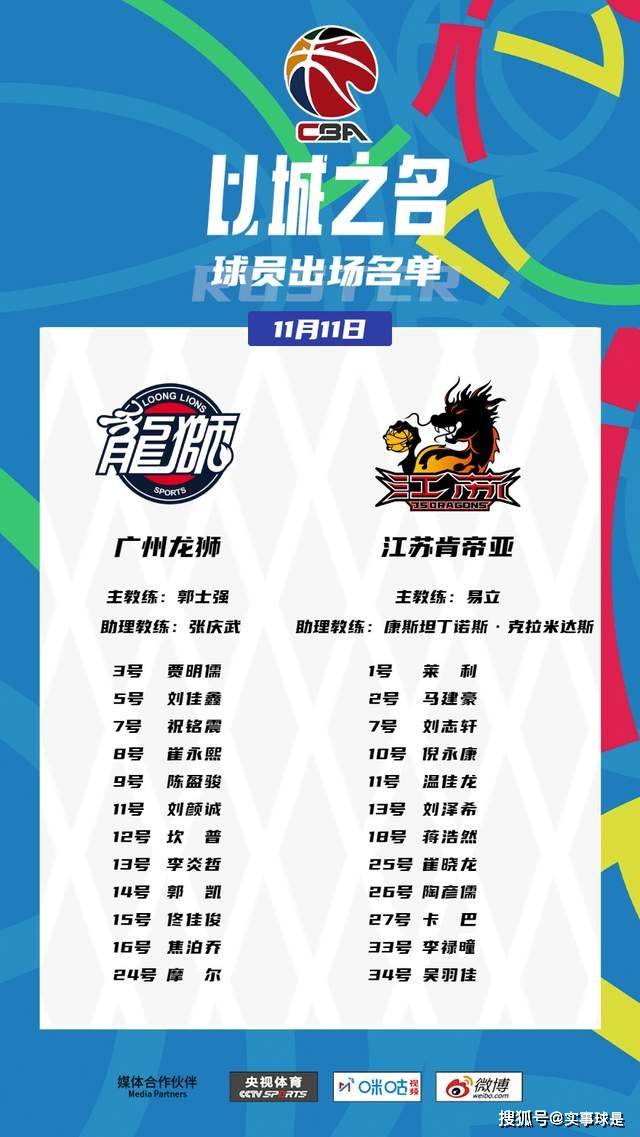 比赛中,广州队主帅郭士强安排的首发阵容是:陈盈骏、李炎哲、祝铭震、崔永熙、坎普;江苏队主教练易立安排的首发为:卡巴、崔晓龙、刘志轩、吴羽佳、倪永康。