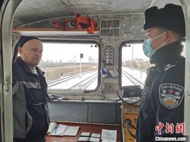 穿着臃肿棉衣的两人,是满洲里出入境边防检查站的执勤人员。当天,他们按常规对两名俄籍列车司机逐一查验完毕后,戴着棉帽的额头已沁出了汗水。
