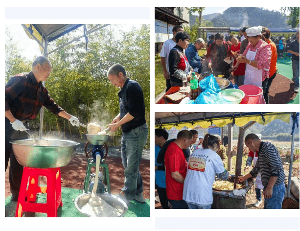在后溪村村委设置了合村炒面、手工麻糍、玉米饼、烤番薯等制作区,邀请村民现场演示、制作,供参赛选手和村民群众品尝。