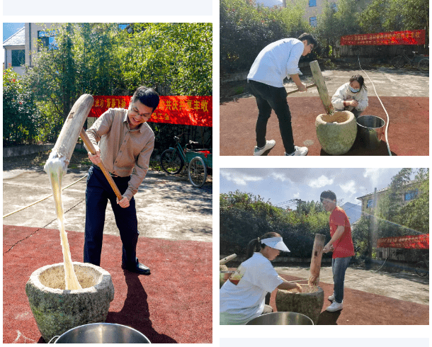组织单身青年两两自由组队,合作体验手工捶打麻糍的过程,并由在场村民、参赛选手品尝、点评。千万工程