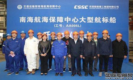 11月10日上午11点18分,由中国船舶集团武昌造船建造的南海航海保障中心大型航标船(AA005L)顺利开工。交通运输部南海航海保障中心、中国船级社武汉分社、中国船级社实业有限公司广州分公司、中国船舶集团第七〇八研究所等相关单位领导、来宾出席开工仪式。