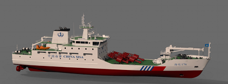2000吨级大型航标船是南海航海保障中心第一艘大型航标船,造价约1.5亿元。该船由中国船舶集团第七〇八研究所设计,总长约75米、型宽14米、型深6.3米,设计吃水4米,航速不小于14.5节,续航力不小于5000海里,自持力40天。本船为钢质、单甲板、双层底、全电焊结构、前倾首、方尾、设艏侧推、电力驱动双舵桨推进装置的大型航标船。本船采用全电力推进系统、设置DP-1级动力定位系统,航区为远海航区,可在6级及以下海况下安全航行,在4级及以下海况下安全作业。该船在燃油舱、淡水舱满载时,可满足续航力5000海里和自持力40天的要求。