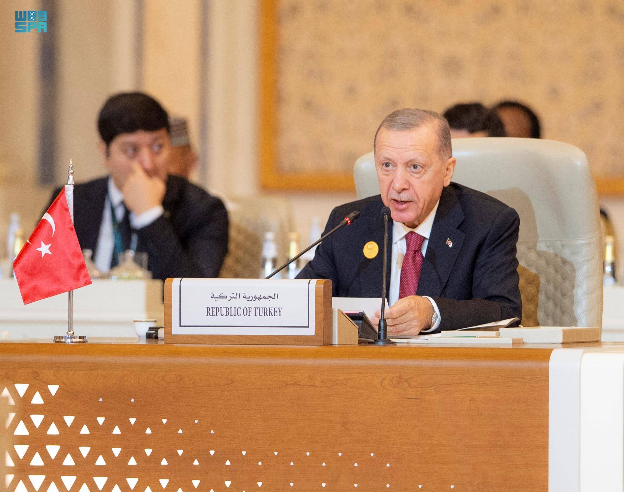 11月11日,在沙特阿拉伯首都利雅得,土耳其总统埃尔多安出席阿拉伯-伊斯兰国家领导人联合特别峰会。 新华社发(沙特通讯社供图)