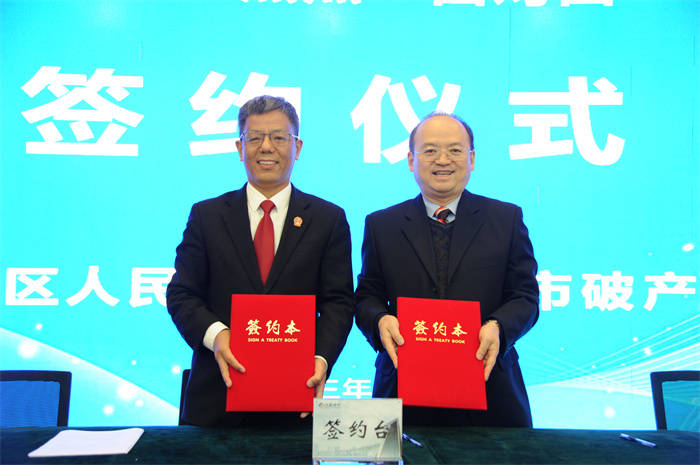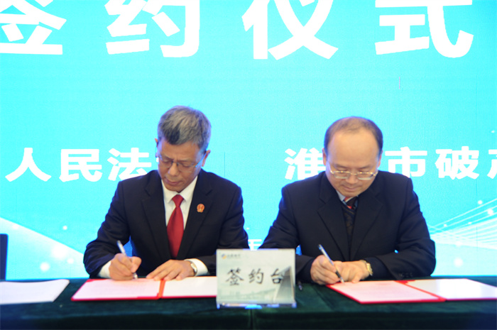 清江浦区法院党组成员、副院长王炳连,淮安市破产管理人协会会长罗岸伟签订共建协议