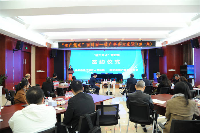 为了建立和坚持法律人共同体意识,充分发挥管理人在办理破产案件中的作用,强化法院对管理人的监督指引,打破法院与管理人的沟通壁垒,11月10日,淮安市清江浦区人民法院与淮安市破产管理人协会举办“破产焦点”面对面工作机制共建签约仪式。